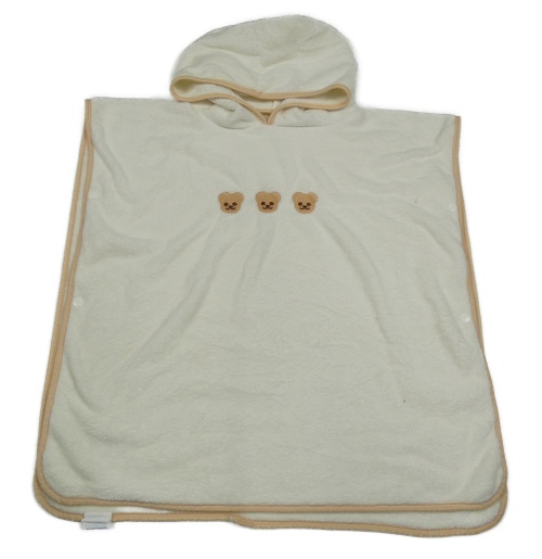 Smotanové plyšové domáceé pončo s medvedíkmi a kapucňou