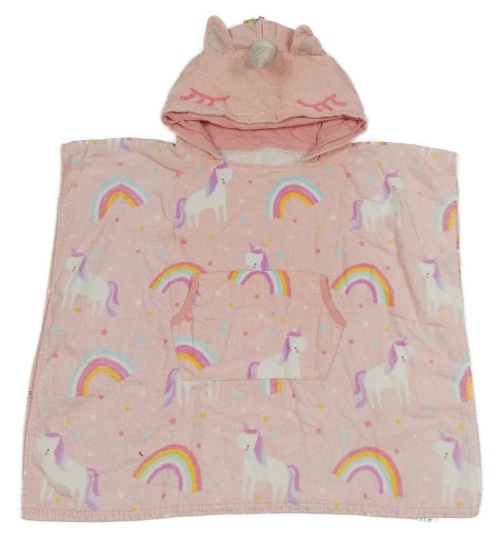 Ružová froté osuškové pončo s jednorožcami a kapucňou