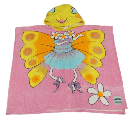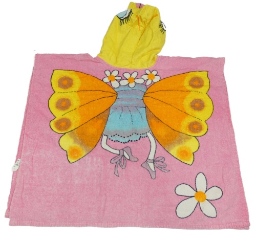 Ružové froté osuškové pončo s motýlom a kapucňou