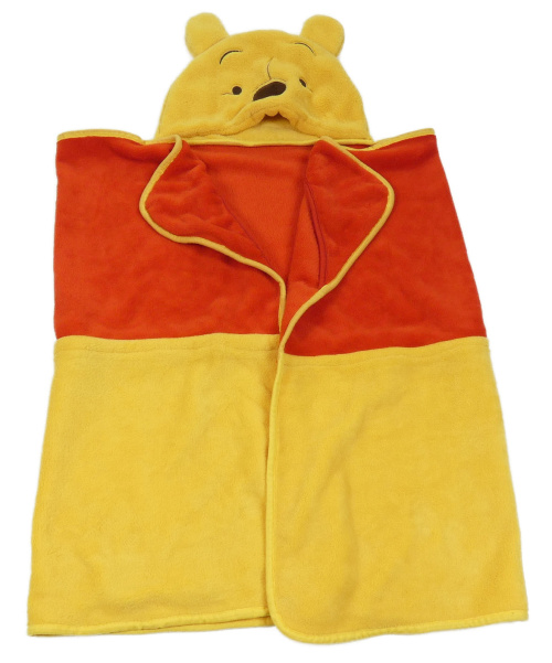 • Hořčicovo-červená plyšová zavinovací deka s kapucí - Medvídek Pú