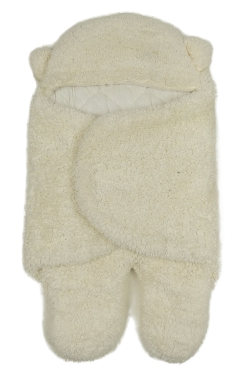 Smotanová huňatá zateplená zavinovací deka s kapucňou