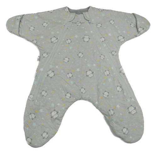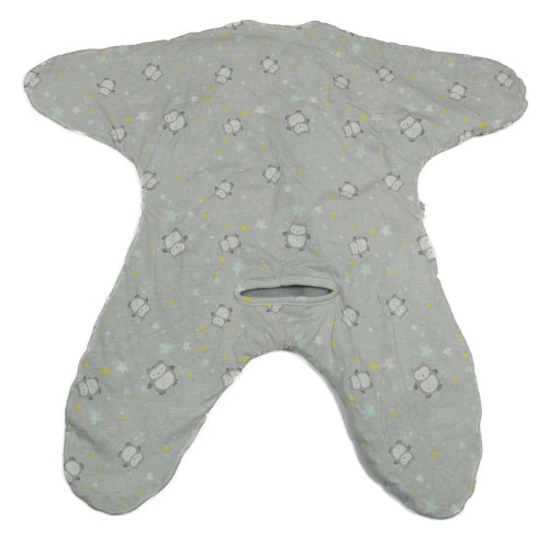Svetlosivý zateplený overal s tučňáky do autosedačky