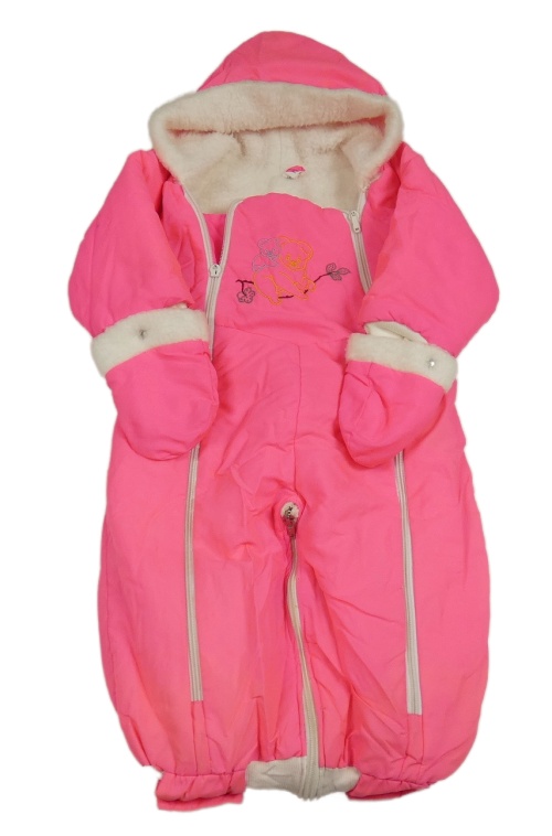 Neonově růžový šusťákový zimní fusak s kapucňou a odepínacími rukavicemi