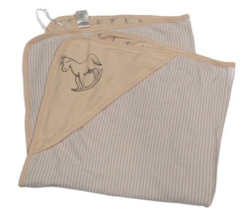 Broskvovo-biela pruhovaná bavlnená osuška s koníkem a kapucňou