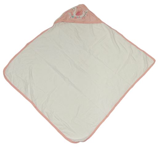Bielo-svetloružová froté zavinovací osuška s kapucňou s labuťou Bonjour Bébé