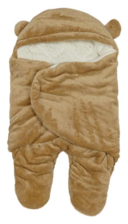 Béžový kožešinový zateplený zavinovací fusak s kapucňou