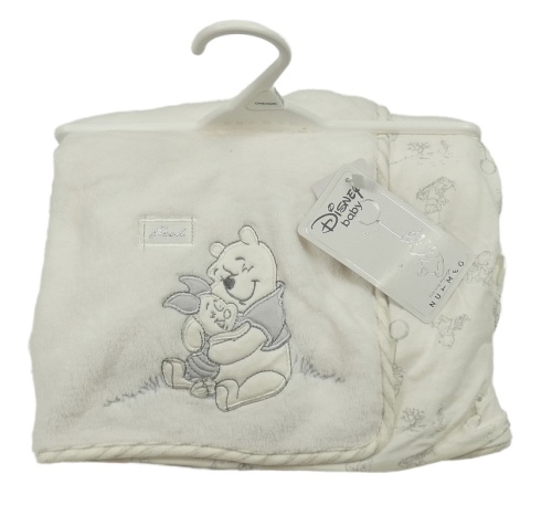 Nové - Biela plyšová podšitá deka s medvídkem Pú Nutmeg