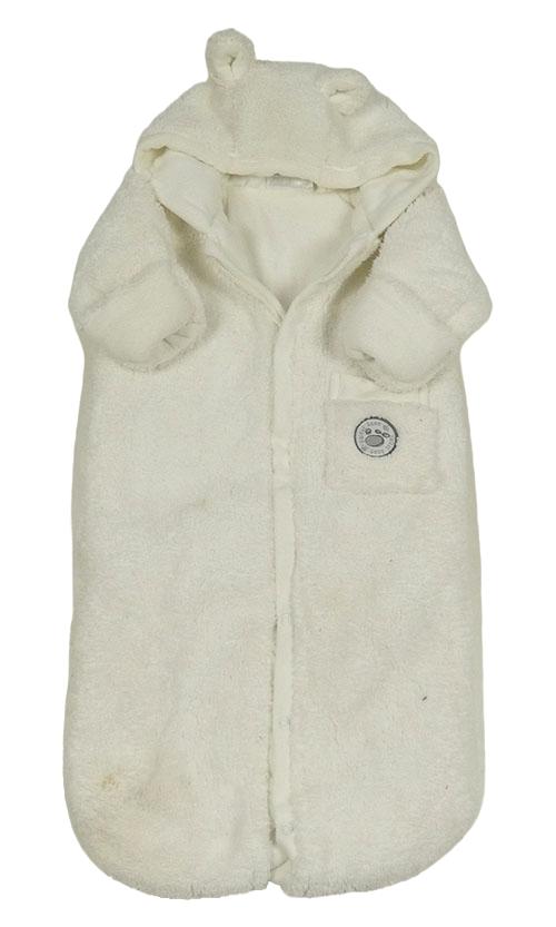 • Bílý chlupatý zateplený fusak/kombinéza s nášivkou a kapucňou Ergee