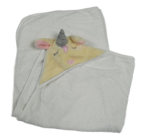 Biela froté zavinovací osuška s kapucňou s jednorožcom