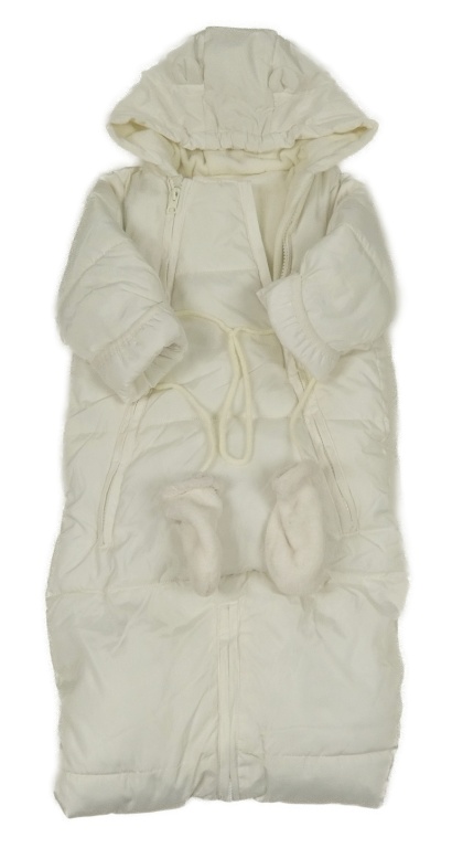 Bílý šusťákový zimní fusak s kapucí + rukavice