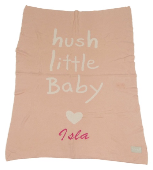 Svetloružová pletená deka s nápisom