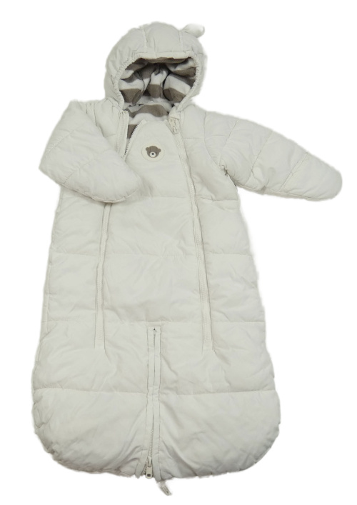 • Bílý šusťákový zimní fusak/kombinéza s medvedíkom a kapucňou