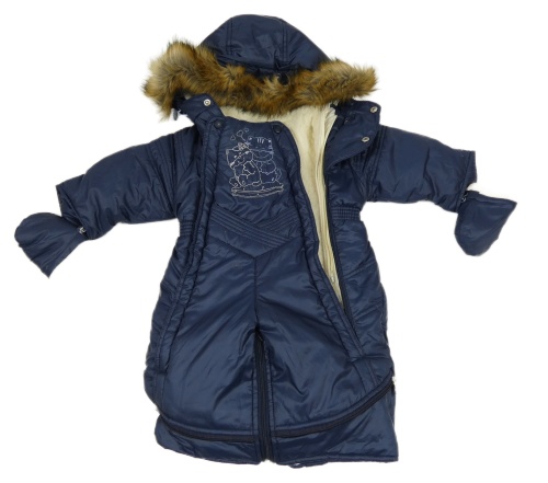 • 3v1 - Tmavomodrý prošívaný šusťákový zimní fusak s kočičkami a kapucňou s kožešinou + rukavice