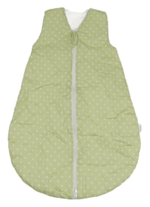 Světlezeleno-bílý puntíkatý zateplený spací pytel