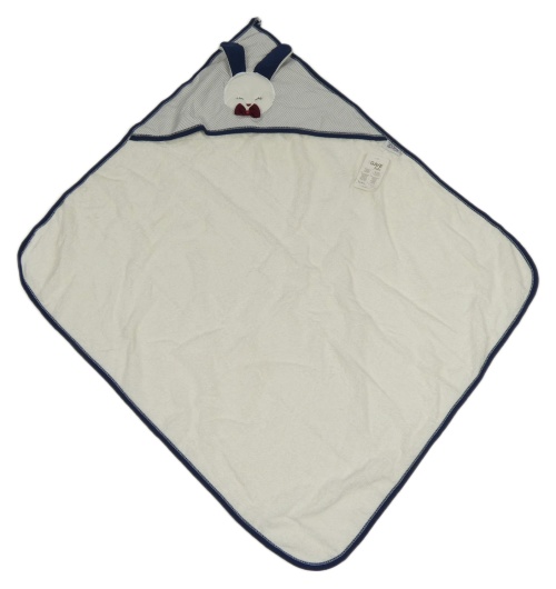 Nové - bielo-tmavomodrá froté zavinovací osuška s kapucňou so zajačikom GAYE