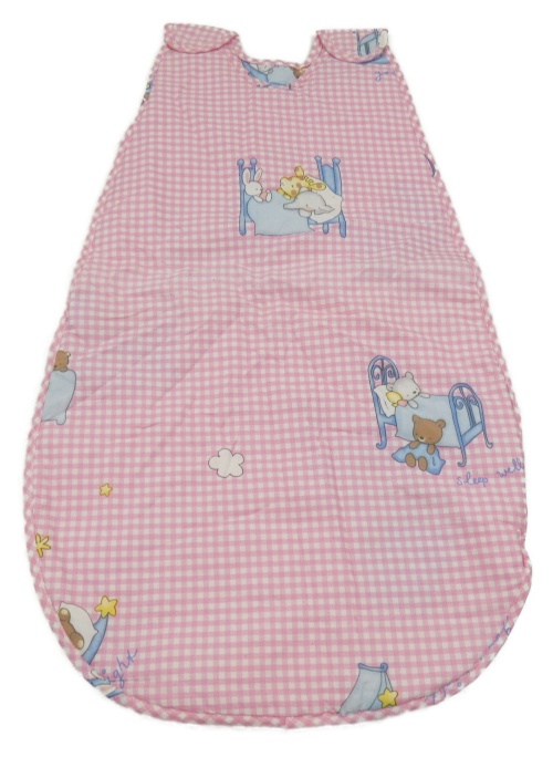 Růžový kostičkovaný spací pytel s obrázkami