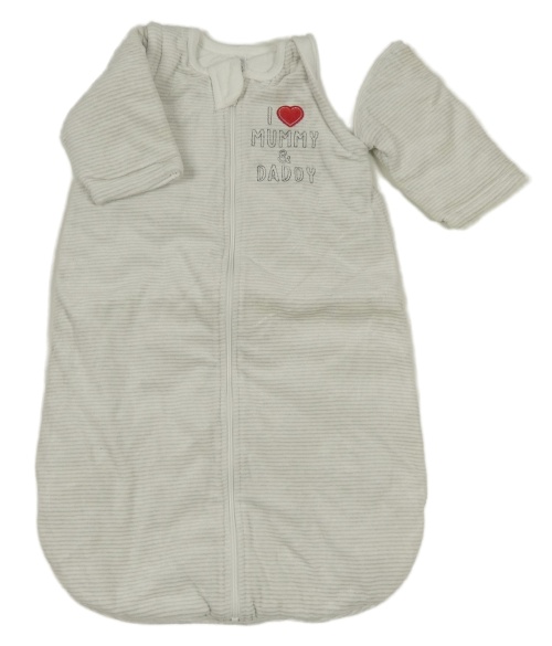 • Šedo-bílý pruhovaný sametový zateplený spací pytel s nápisom a odepínacími rukávy C&A