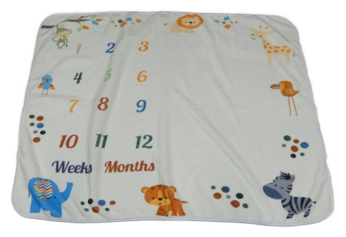 Biela plyšová měsíční deka so zvířaty