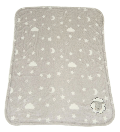 • Sivá plyšová deka s ovečkou a hviezdičkami a obláčikmi a mesiacmi PRIMARK