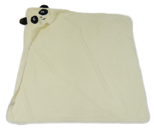 Krémová chlpatá deka s kapucňou s pandou