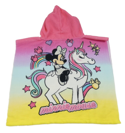 Ružovo-modro-žlté froté osuškové pončo s Minnie a kapucňou