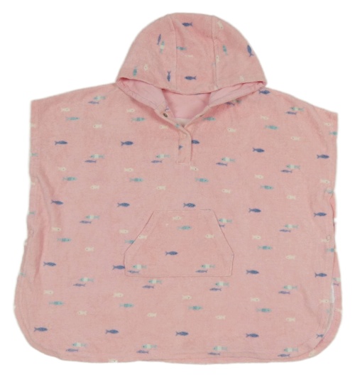 Svetloružové froté pončo osuška s rybičkami a vreckom a kapucňou John Lewis