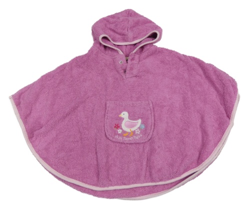 Tmavoružové froté osuškové pončo s husou a kapucňou Jojo Maman Bébé
