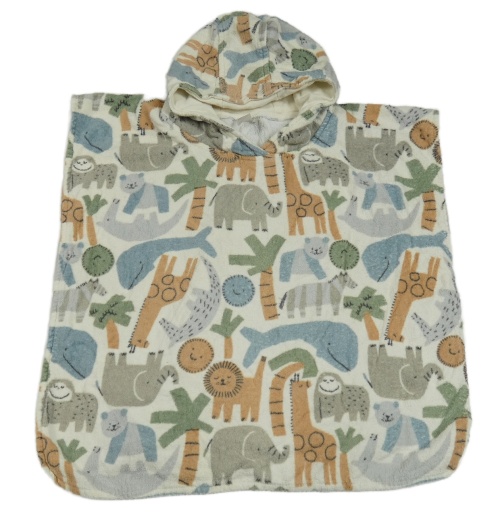 Krémové froté osuškové pončo so zvířaty a kapucňou Tu