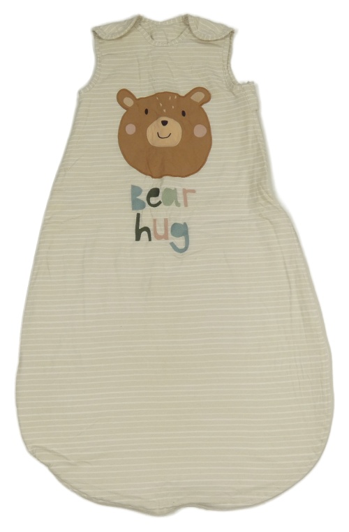 Béžovo-bílý pruhovaný bavlněný lehce zateplený spací pytel s medvedíkom John Lewis