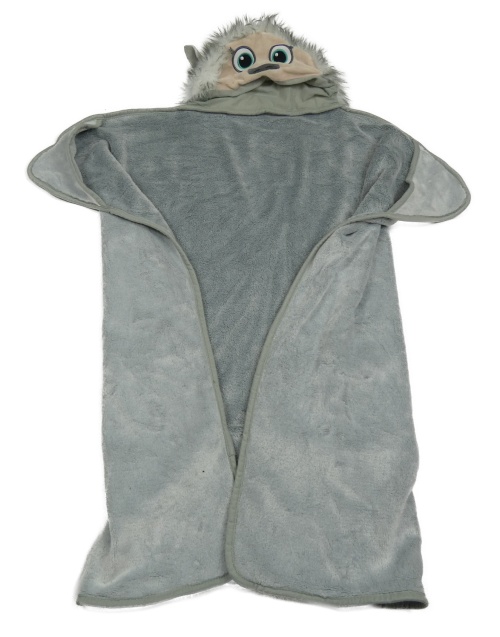 Sivá chlpatá zavinovací deka s kapucňou s ňufáčikom