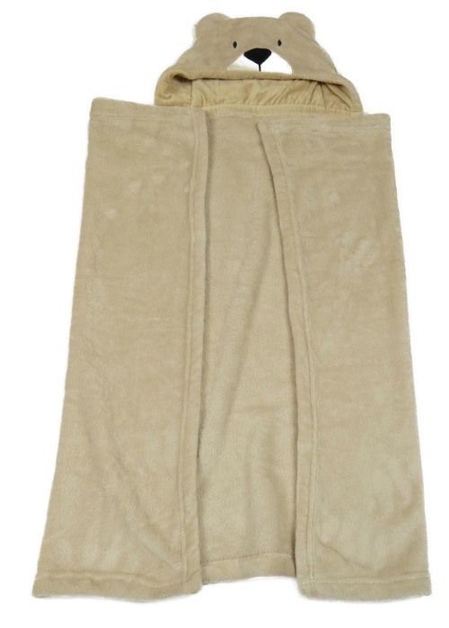 Béžová plyšová deka s kapucňou s medvěďom