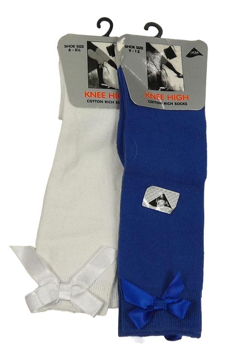 Nové - 2x podkolenky - bílé s mašlí + modré s mašlou