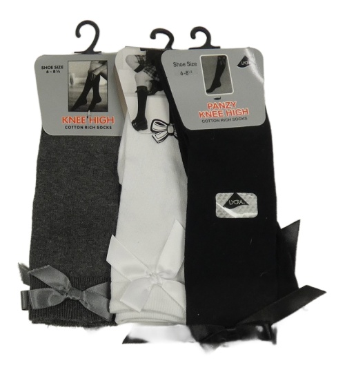 Nové - 3x podkolenky s mašlí šedé+ bílé+ černé