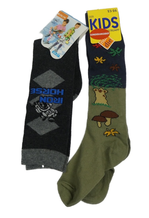 • Nové - 2x Tmavosivé + krahi-modré ponožky s obrázky vel. 23-26
