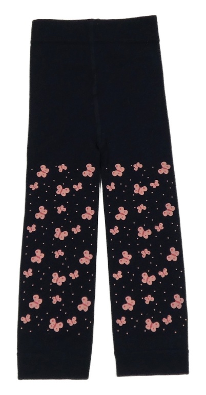 Tmavomodré thermo punčocháče bez šlapiček s motýlikmi a bodkami