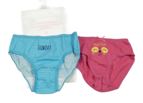 2x kalhotky - modré pruhované + malinové s nápisem 104/110
