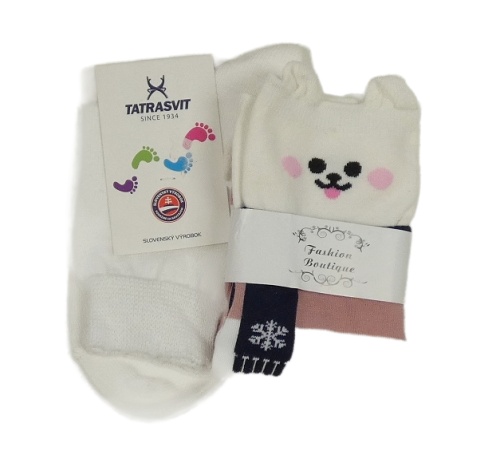 • Nové - 2x - Ponožky - Biele ponožky, bílo/starorůžové pruhované ponožky s medvedíkmi