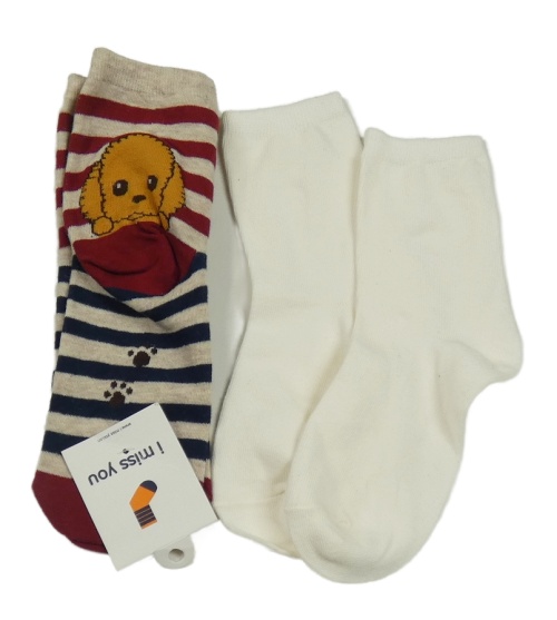 Nové - 2x - Ponožky - Pruhované s pejskem, smetanové