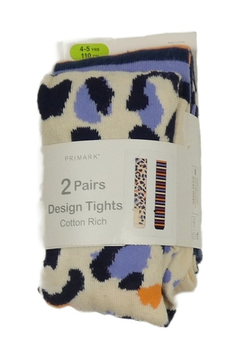 Nové - 2x punčocháče - krémové vzorované + tmavomodro-barevné pruhované Primark