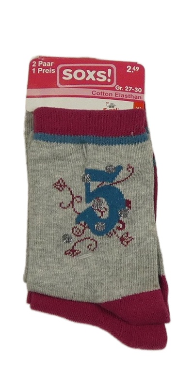 Nové - 2x Sivo-purpurové ponožky s obrázkami Soxs! vel. 27-30