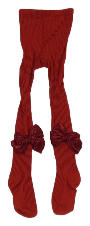 Červené rebrované pančuchy s mašľami