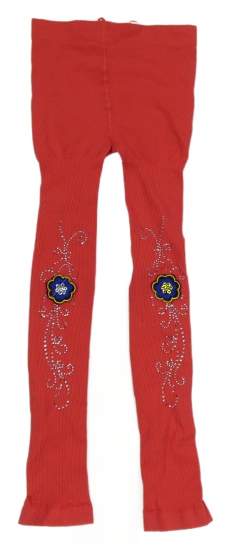 Ružové rebrované punčocháčové legíny s kamienkami a 3D květem