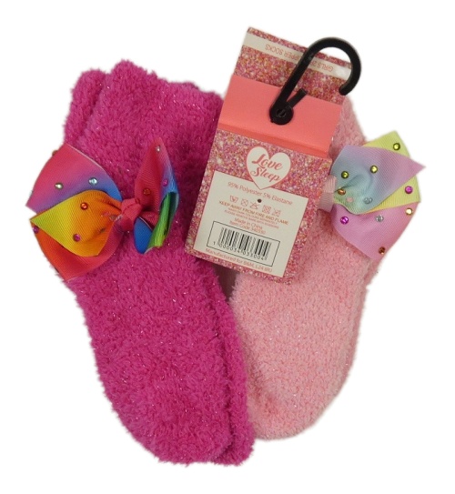 Nové - 2x ponožky - ružové trblietavé chlpaté ponožky s mašlí + tmavorůžové