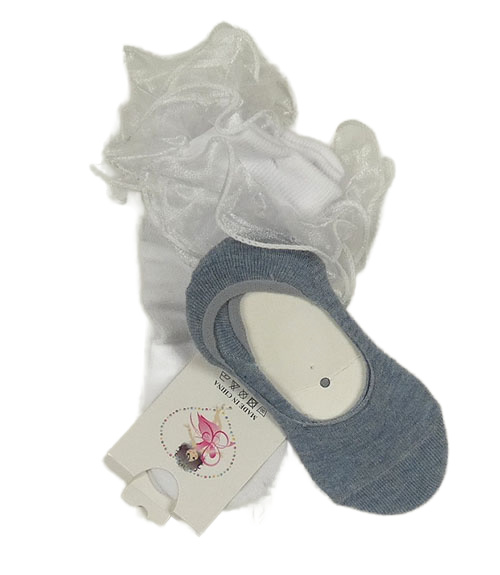 Nové - 2x - Ponožky - Bílé s organzovými volánky + modré melírované neviditelné vel. 27-30