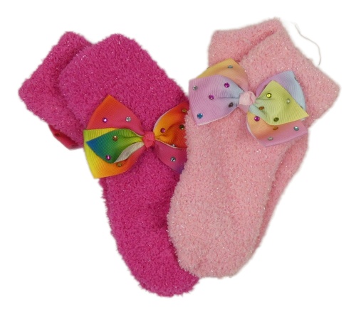 Nové - 2x ružové chlpaté ponožky s mašlou a kamienkami