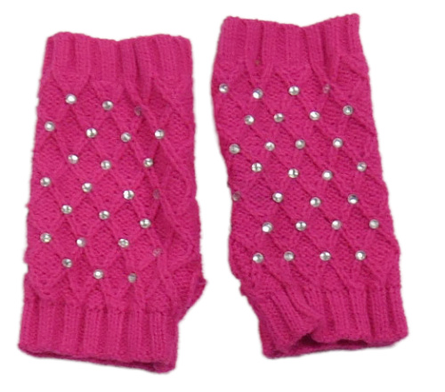 Neonově růžové pletené návleky s kamienkami