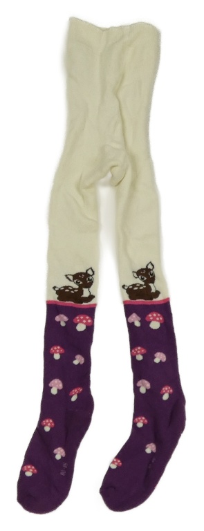 Smetanovo-purpurové teplákové pančuchy so srnkami a muchomůrkami lupilu