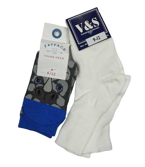 Nové - 2x ponožky - bílé + tmavošedé vzorované s nosorožcem