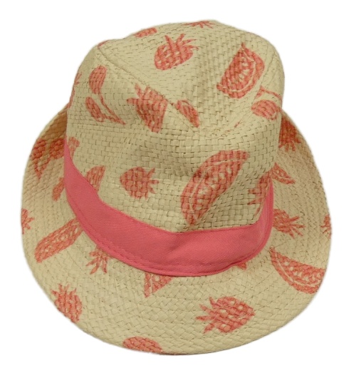 Béžový slaměný klobúk s ružovým ovociem