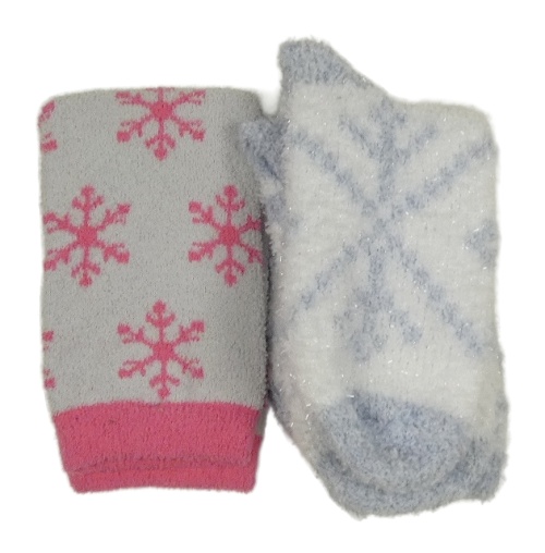 Nové - 2x - Modro-bílé + šedo-růžové huňaté ponožky vel. 31-34